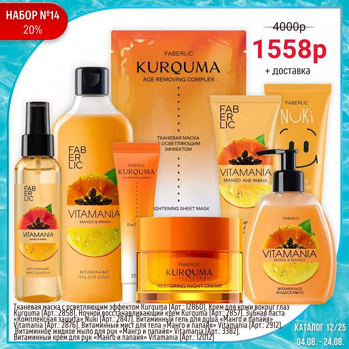 Для оформления заказа, выбирайте понравившийся набор и нажмите кнопку "купить набор", далее выбирайте "Зарегистрироваться и заказать", если это ваш первый заказ в Faberlic или "Войти и заказать", если уже есть кабинет клиента.